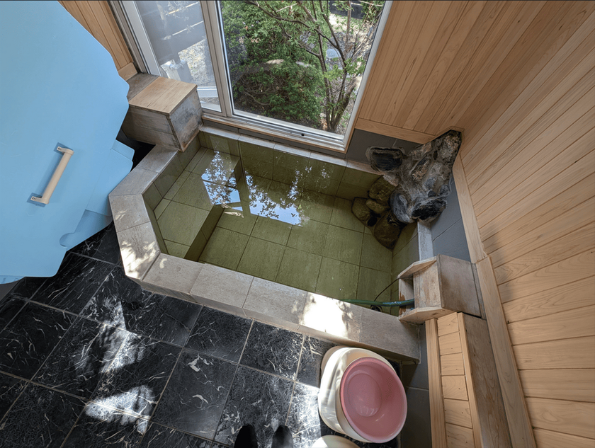 なんといっても源泉かけ流しの温泉付き