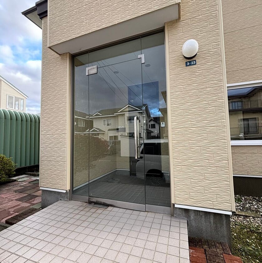 風除室は重厚感のあるガラス扉です🎵